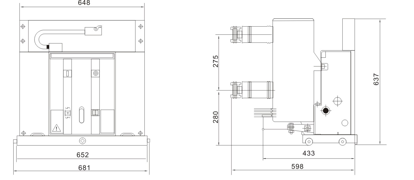 該斷路器采用操動機構(gòu)與斷路器本體一體式設(shè)計,既可做為固定安裝單元,也可配有專用推進機構(gòu),組成手車單元。